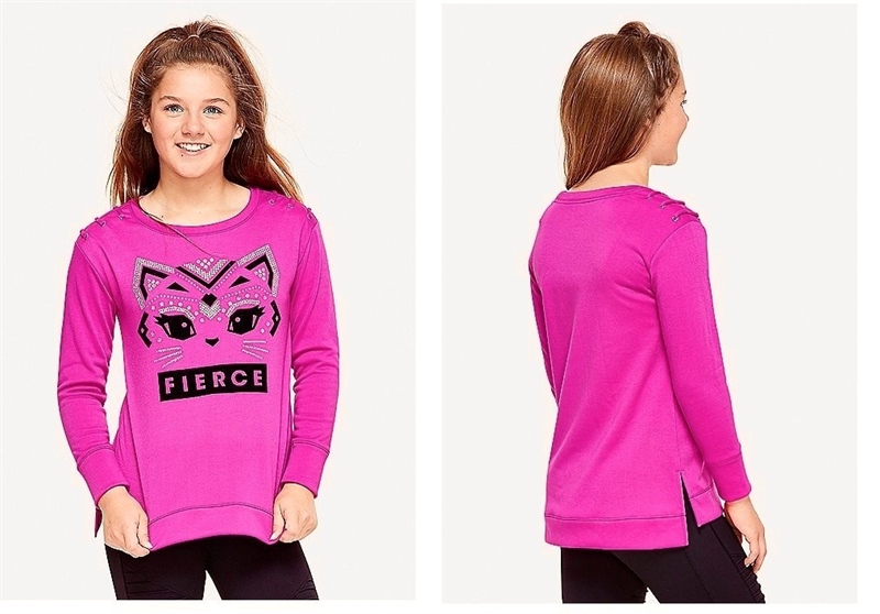Áo thun nỉ da cá Justice màu hồng hình báo đen phối nhung và nhũ bạc cách điệu dây vai