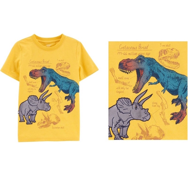 Áo thun bé trai Carter tay ngắn màu vàng khủng long hình nổi
