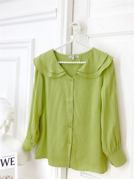 Áo sơmi nữ linen gân mềm thiết kế cổ sen tầng