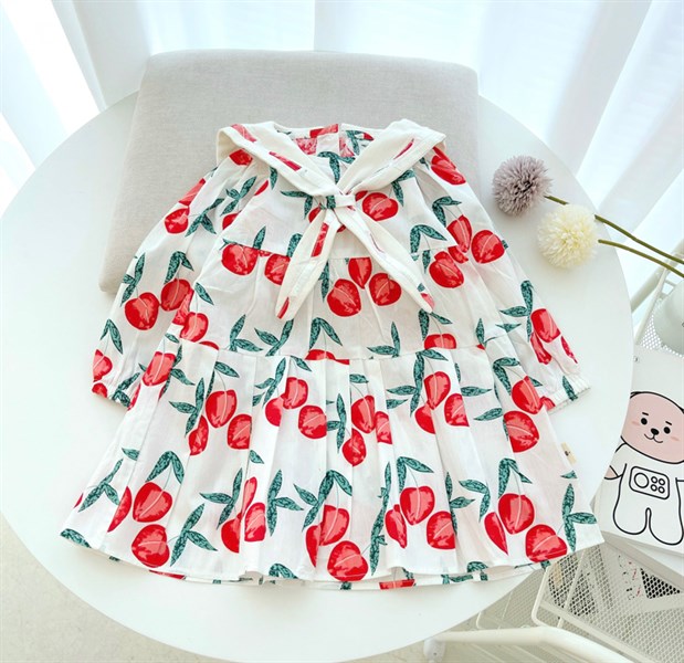 Đầm bé gái cherry tay dài cổ thuỷ thủ cách điệu
