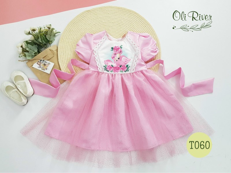 Đầm bé gái công chúa hồng hạc thiết kế cao cấp