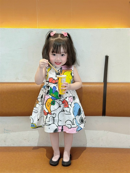 Đầm bé gái hình chó snoppy nhiều màu sắc phối hàng nút