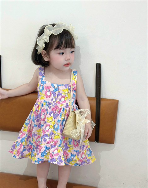 Đầm bé gái phối hàng nút giữa cột nơ lưng