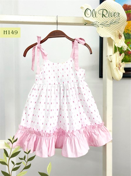 Đầm dây hoa thiết kế bé gái phối màu