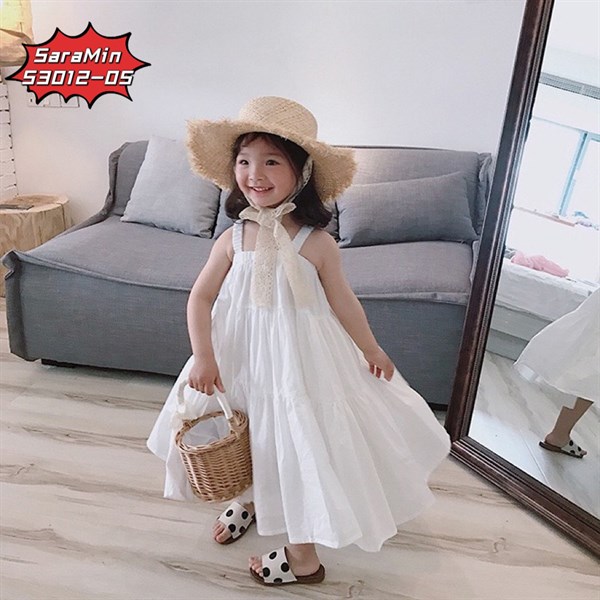 Đầm dây maxi xoè bé gái thiết kế kèm kẹp nơ to xinh xắn