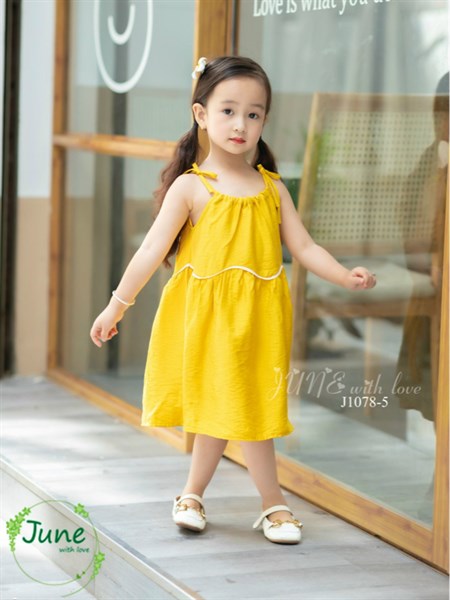 Đầm dây thiết kế bé gái viền lượn sóng cột dây vai