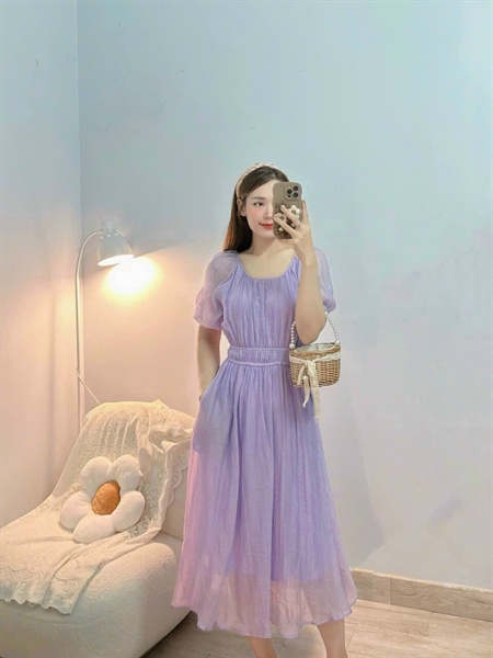 Đầm nữ thiết kế tơ nhăn rũ bo eo và tay