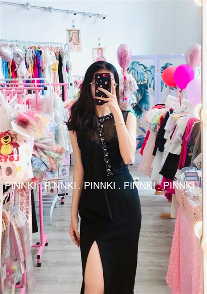 Đầm dự tiệc cao cấp phối ren hoa đính đá xẻ đùi