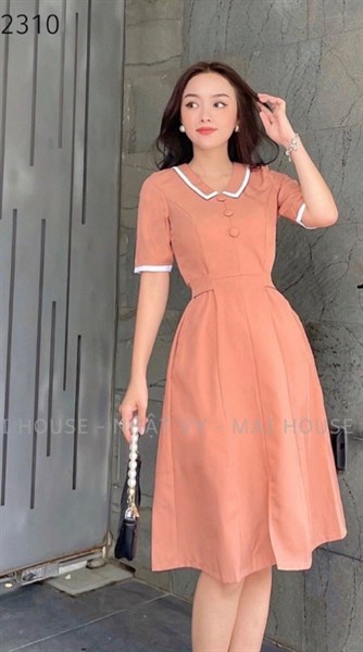 Đầm nữ thiết cổ sen phối viền tay