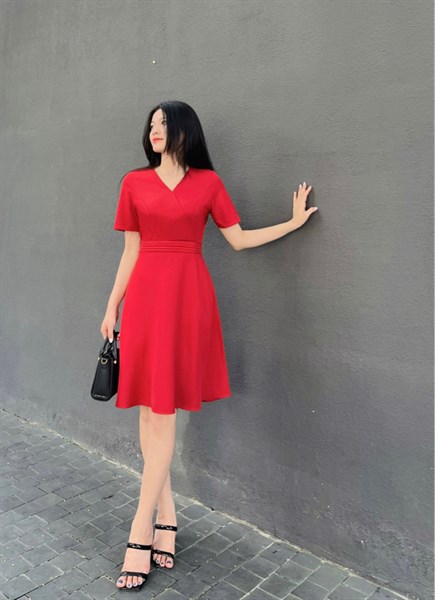 Đầm nữ thiết kế cotton HQ cổ V chiết eo