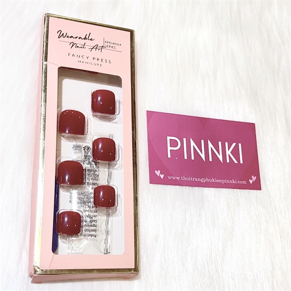 Set 24 nails vuông dán móng chân màu trơn kèm keo dán