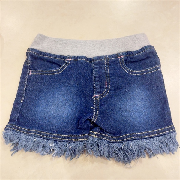 Quần short jean lưng thun xanh đậm wash tưa gấu quần