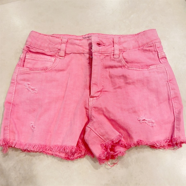 Quần short jean màu hồng wash Zara Girls tưa gấu quần rách nhẹ