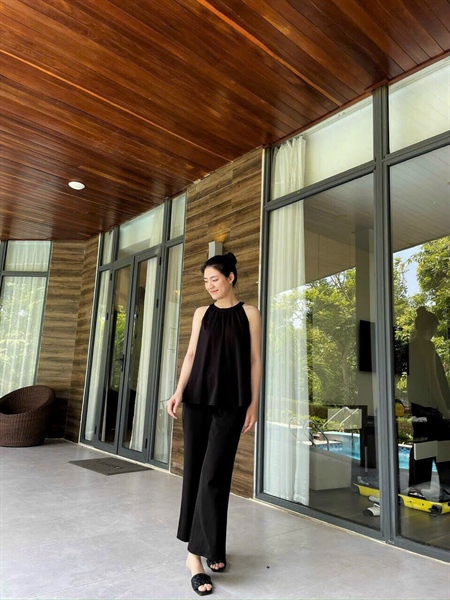 Set nữ thiết kế linen áo cổ yếm phối quần suông dài