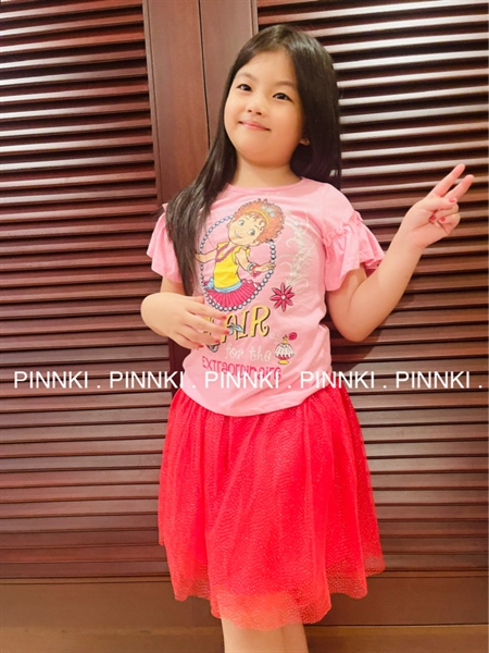 Set áo thun chân váy voan bé gái