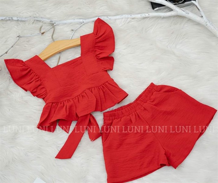 Set bé gái thiết kế áo tay cánh tiên cột nơ lưng phối quần short đũi