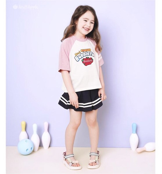 Set bé gái xuất Hàn áo raplan phối màu form rộng phối váy quần xếp ply