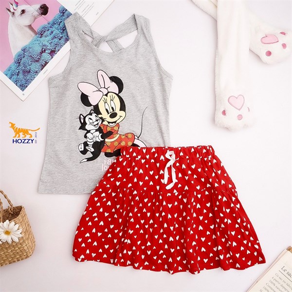 Set bộ xuất dư áo ba lỗ phối nhũ kim tuyến + váy quần lưng thun