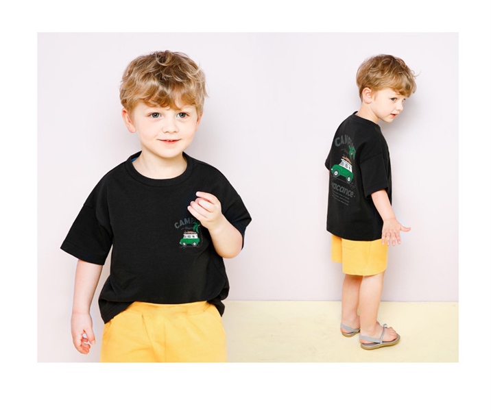 Set bé trai xuất Hàn Jelispoon áo thun chữ Camping phối quần short túi hộp