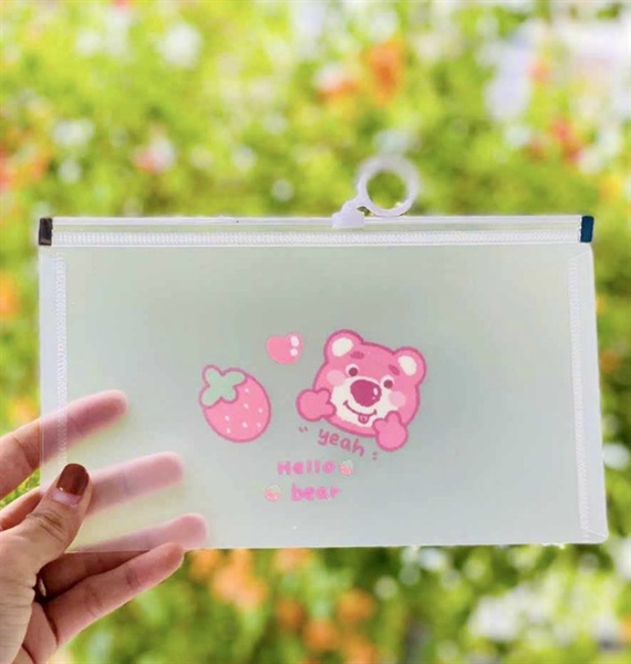 Túi zip A6 gấu dâu form cứng