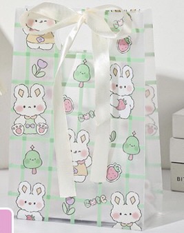 Túi đựng quà nhựa màu sọc caro cột dây nơ size to 35x24x10cm